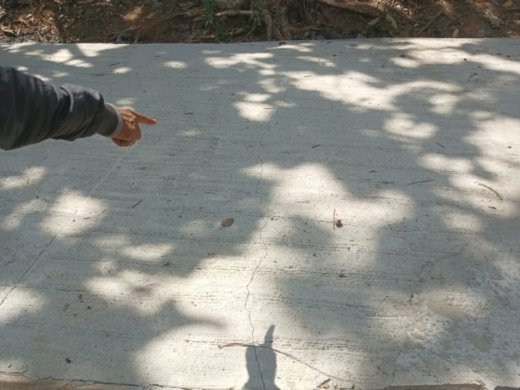 "Pasir 10, satu semen, dan 6 batu koral gimana tidak patah gitu pak, sehingga tidak akan bertahan lama" Ucap warga sekitar yang tak ingin disebut namanya.