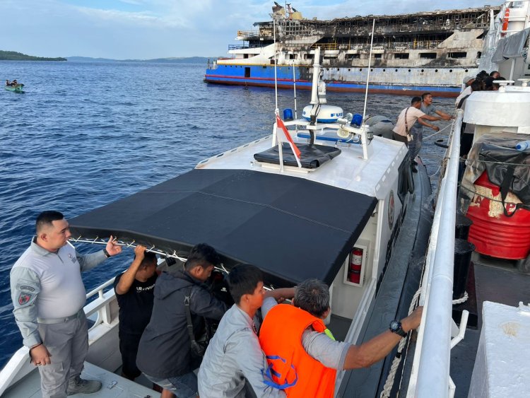 Bakamla RI Evakuasi Korban Kebakaran KMP Barcelona 5 di Perairan Talise