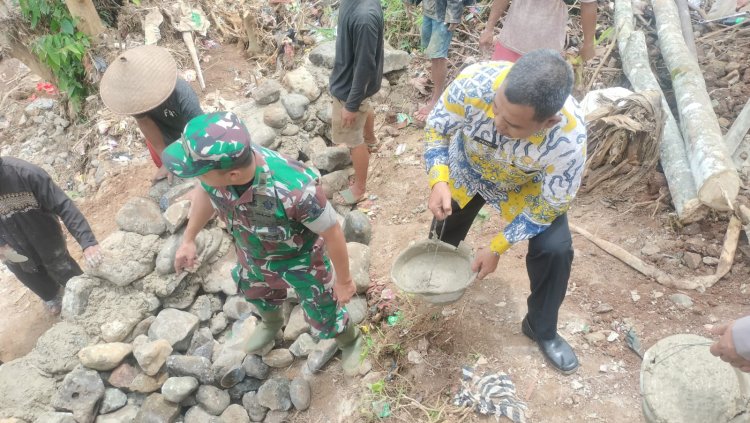 Sukabumi, 9 Januari 2025 – Komandan Kodim (Dandim) 0622/Kabupaten Sukabumi, Letkol Kav Andhi Ardana Valeriandra P., S.H., M.Si., bersama Forum Koordinasi Pimpinan Kecamatan (Forkopimcam) Waluran melaksanakan kerja bakti memperbaiki tanggul dan fondasi jembatan yang rusak akibat bencana banjir pada 3 Desember 2024. Kegiatan ini berlangsung di Kampung Bojong Koneng, Desa Giri Mukti, Kecamatan Waluran.