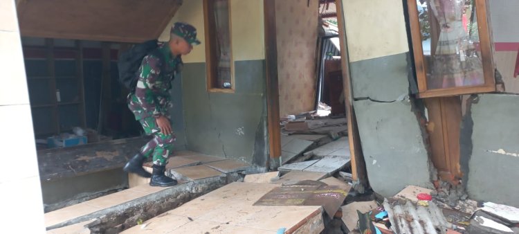 Danramil dan Batuud Koramil 2201/Cisolok Tinjau Rumah Warga Terdampak Bencana Pergeseran Tanah