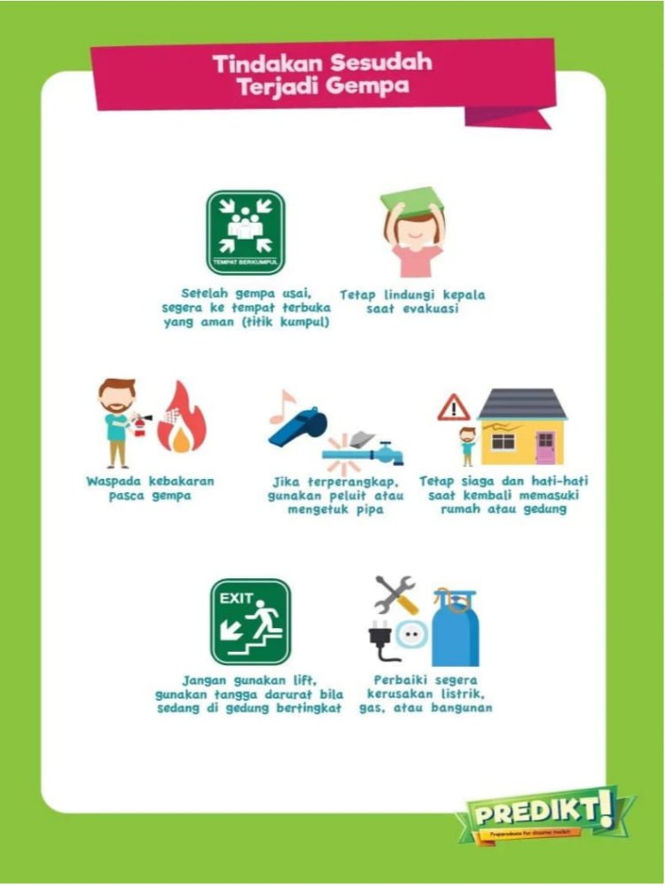 Selesai gempa bumi terjadi, pastikan beberapa langkah berikut :