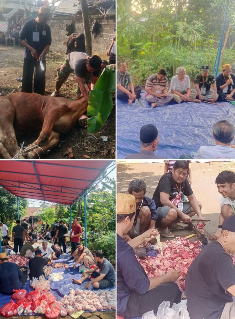“Alhamdulillah, seluruh hewan kurban merupakan partisipasi dari warga sendiri. Selain dibagikan kepada warga Rt 04, kampung kaum pandak desa.karadenan sebagian juga kami sisihkan untuk jamaah Masjid Al-mujahidin yang tidak hanya berasal dari satu Rt saja, tetapi dari berbagai wilayah,” ujar Bapak. Drs.H.sujana azhari Mpd
