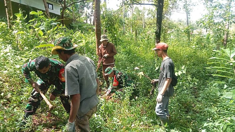 Penanaman Pohon oleh Serda Sadi dan Babinsa Koramil 2215/Ciemas di Desa Tamanjaya