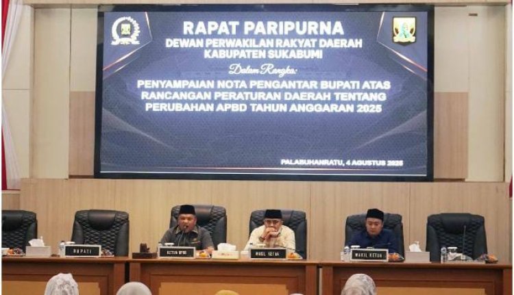 Dewan Perwakilan Rakyat Daerah (DPRD) Kabupaten Sukabumi menggelar Rapat Paripurna ke-28 pada Tahun Sidang 2025 dengan agenda Penyampaian Nota Pengantar Bupati Atas Rancangan Peraturan Daerah Tentang Perubahan APBD Tahun Anggaran 2025. Acara tersebut berlangsung di Ruang Rapat Utama DPRD pada Senin, (04/08/2025).