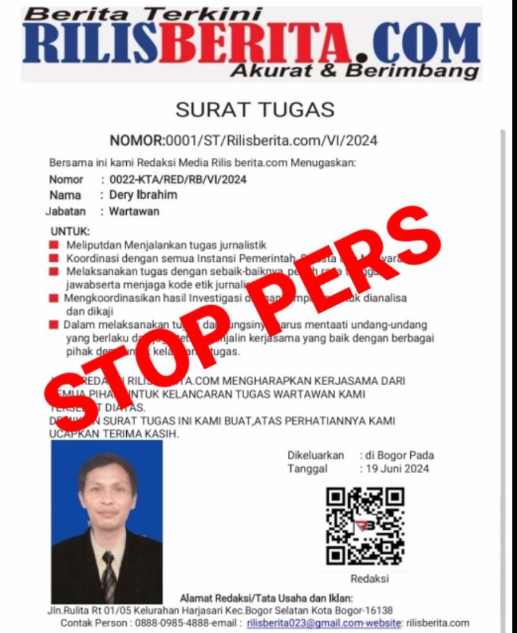 Stop PERS!!! Dihimbau Kepada Seluruh Instansi Pemerintah, Polri, TNI, Swasta. Bahwa Nama yang kami sebutkan atau cantumkan di bawah ini bukan lagi Wartawan rilisberita.com
